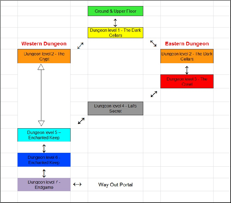 The extensive and intricate caverns and cellars the expedition uncovered beneath the Tower were patrolled by various demonic and undead guardians. There also seems to be link between the tower and the Pantherine, a notoriously warlike race of creatures with four arms. One of the more interesting discoveries was a skill house (possibly set up by or for the use of the Pantherine) where one may learn the skills of undead, human and orc slaying to a high degree of expertise. Chaldan considered the layout to be testimony in itself to Kreskin'Lal's madness.