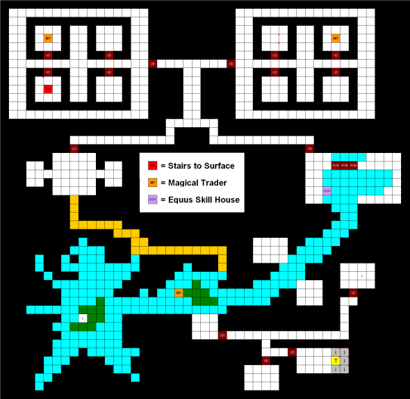 Centaurs may still wish to visit Noir’s Lair to seek out the Equus Skill House, where the spirits of dead equine masters are willing to impart the knowledge of the ages through magical means to others of their persuasion. But if you do seek it, then be cautious, for though Noir may be dead some of his lesser minions still roam the tunnels of his Lair.
